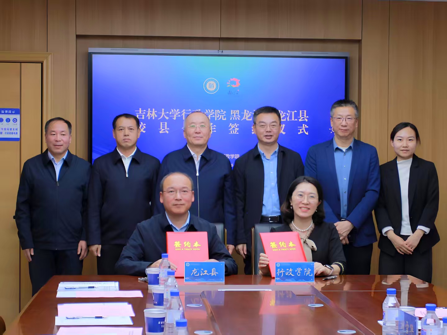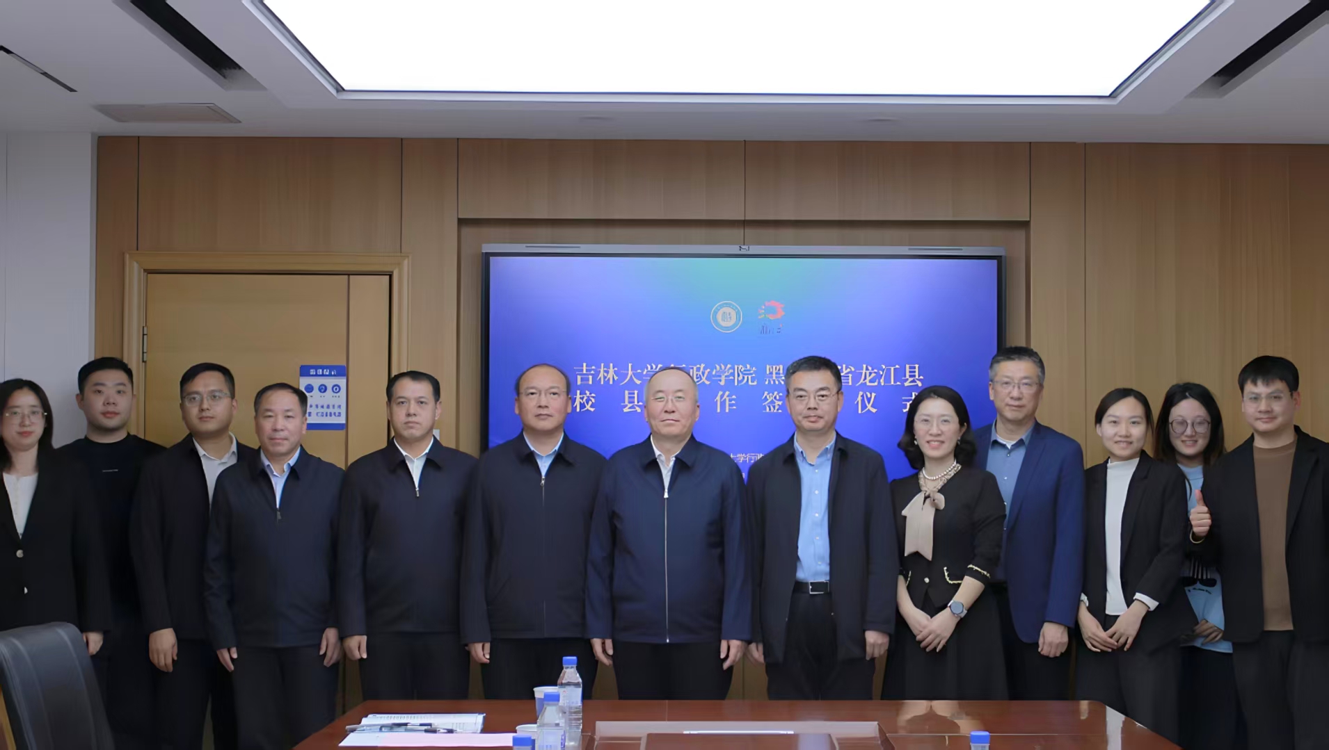 2025年12月15日,吉林大学行政学院与黑龙江省龙江县在吉林大学行政学院举办校县合作座谈会暨签约仪式。吉林大学行政学院党委书记陈希贵,党委副书记史慕华,副院长刘雪华,龙江县委书记关宝建,县委常委、组织部部长张红玉,县委常委、县委办公室主任夏洪刚等相关领导出席会议。会议由吉林大学行政学院党委副书记史慕华主持。