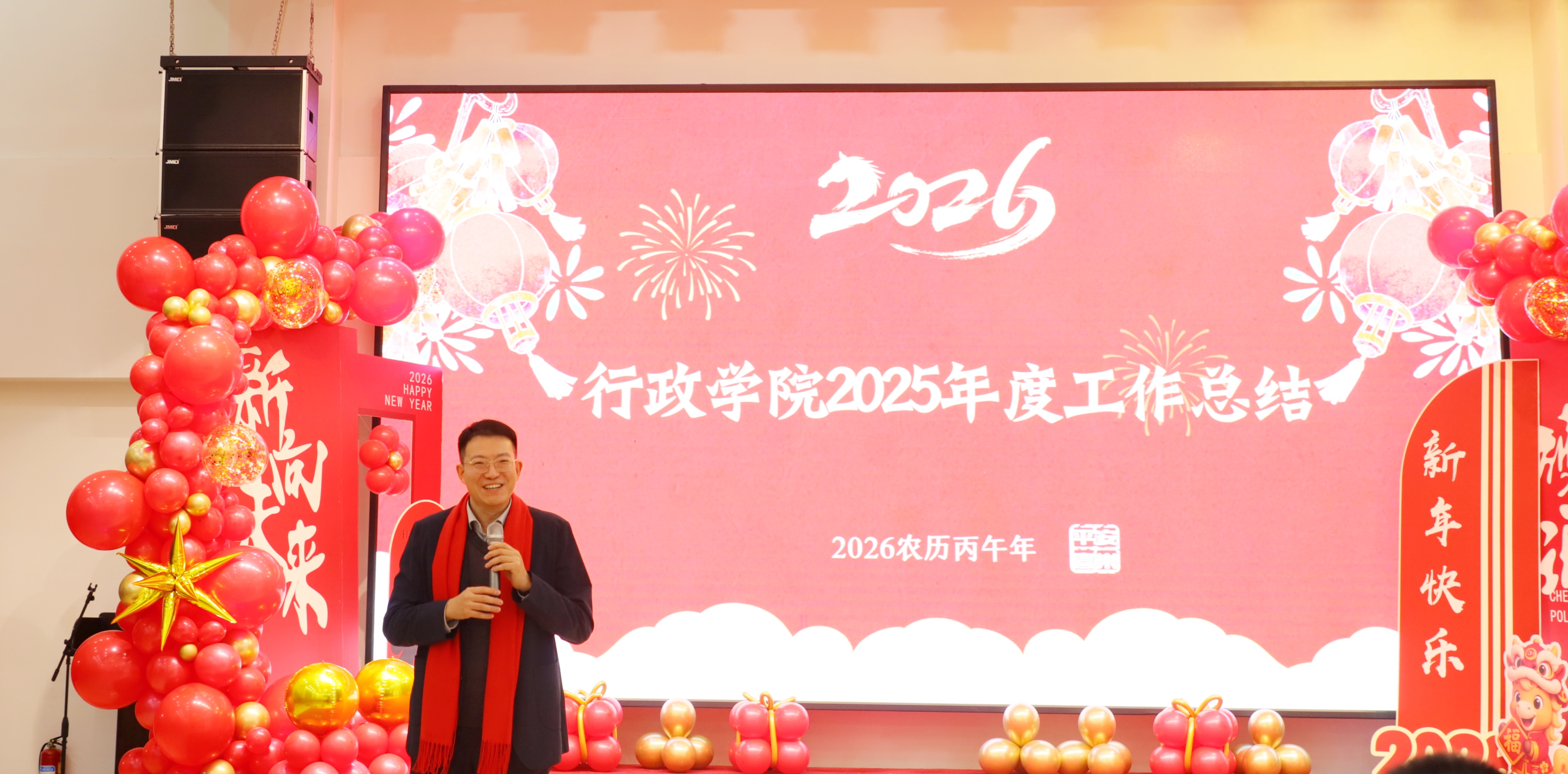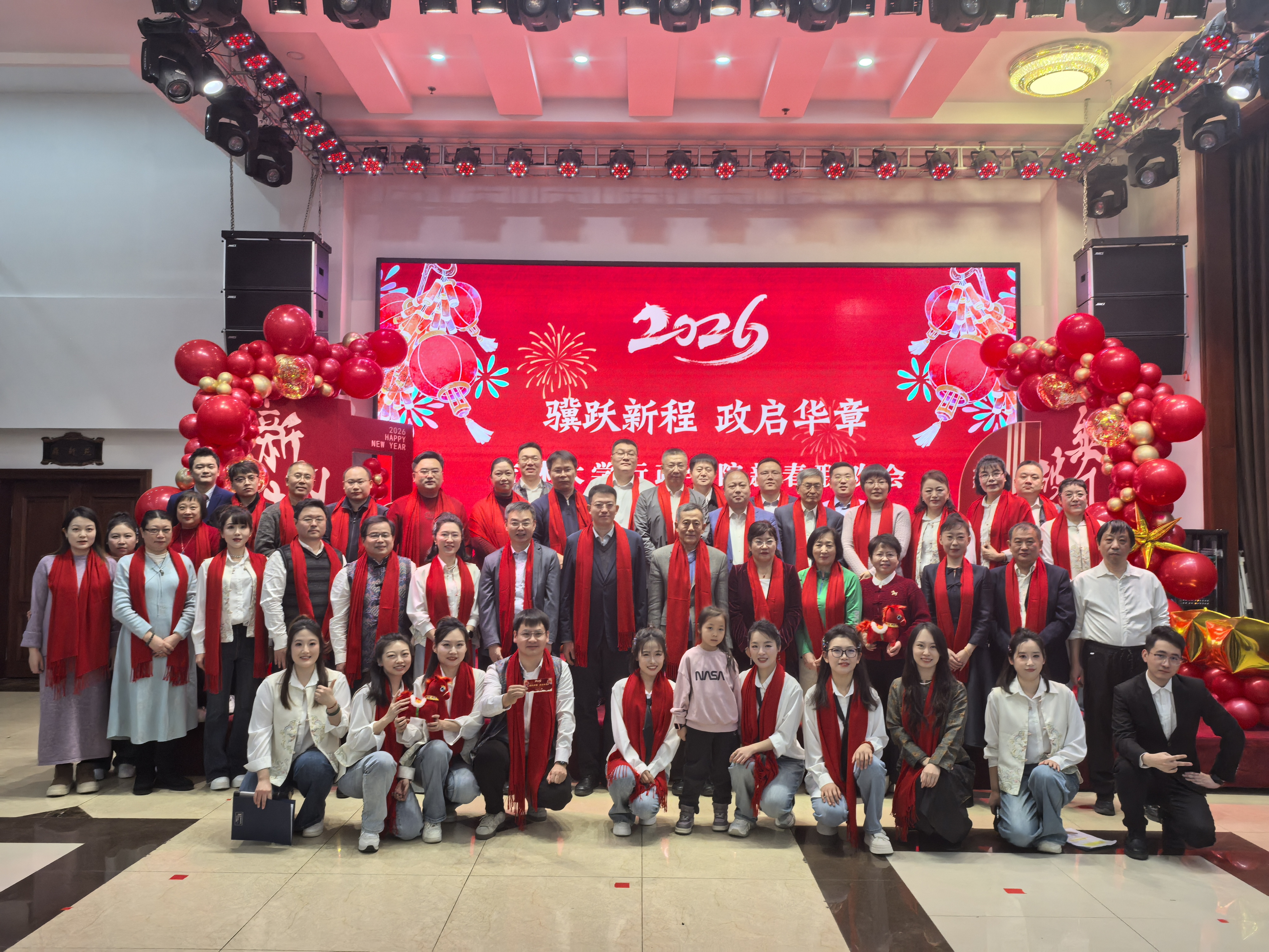 马年伊始承宏运,骐骥奔腾启新程。2026年1月9日下午,吉林大学行政学院在友谊会馆举办2026年新春联欢会,全院教职工欢聚一堂,共辞旧岁,喜迎新年。
