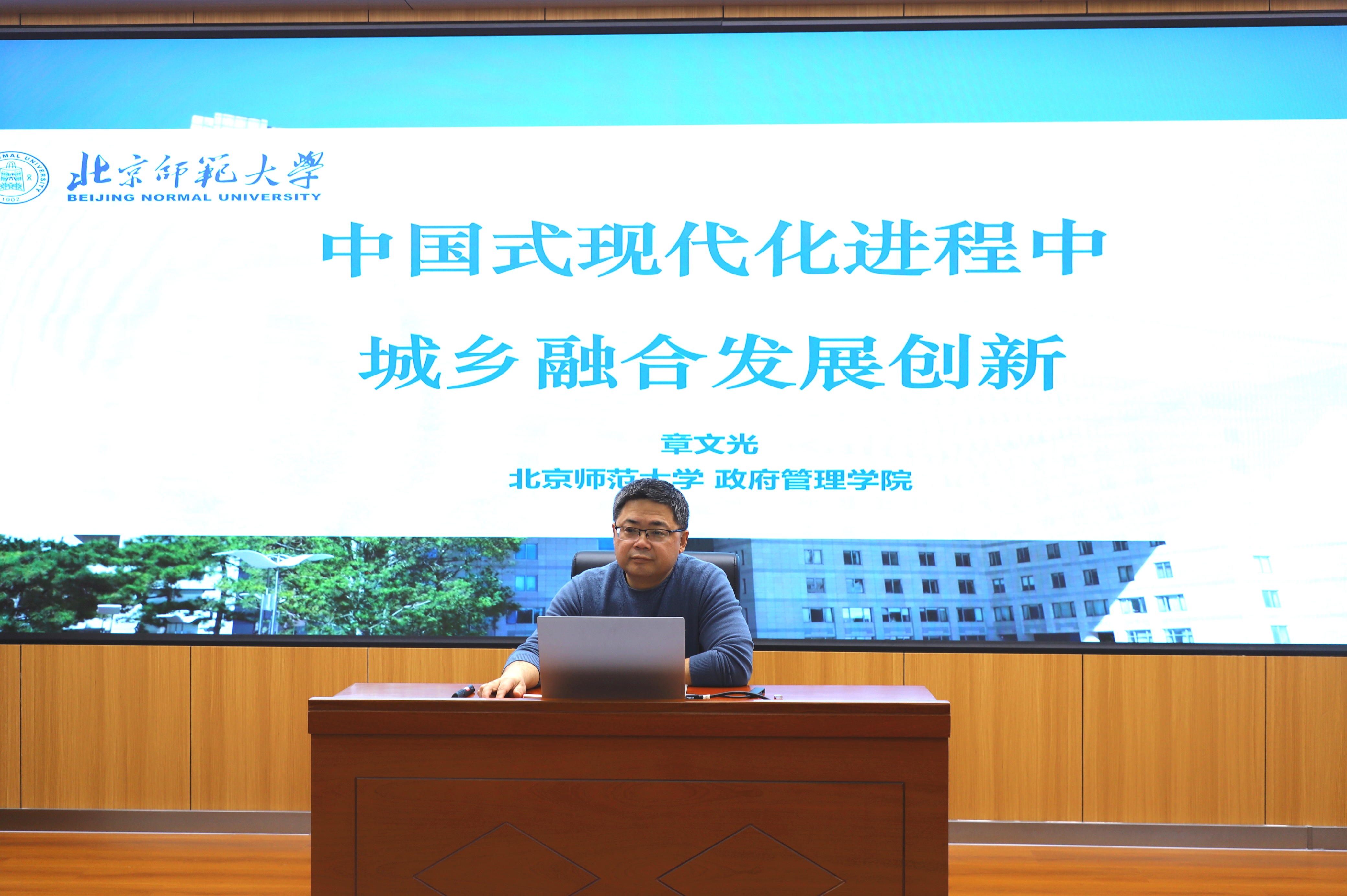 2025年11月21日下午,吉林大学行政学院名家讲座(第33期)在东荣大厦B102报告厅举行,北京师范大学二级教授、政府管理学院院长、国家哲学社会科学领军人才章文光受邀担任主讲嘉宾,作题为“中国式现代化进程中城乡融合发展创新”的学术演讲。学院公共管理系董伟玮教授,李慧杰副教授,常成副教授,讲师施响及院内外60余名同学参与讲座。讲座由学院副院长刘雪华教授主持。