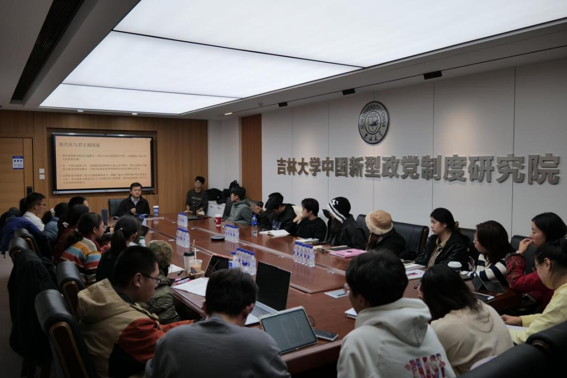 2025年10月20日晚,由吉林大学行政学院主办的第九十二期求智读书会在东荣大厦A307会议室举行。吉林大学行政学院副院长姚璐出席活动,报名参加本期读书会的20余位本科生同学参加本次研讨活动。本次读书会以“现代化与政治秩序:机遇还是挑战?”为主题,围绕塞缪尔·亨廷顿的《变化社会中的政治秩序》展开研讨,由行政学院政治学系赵德昊讲师主持。