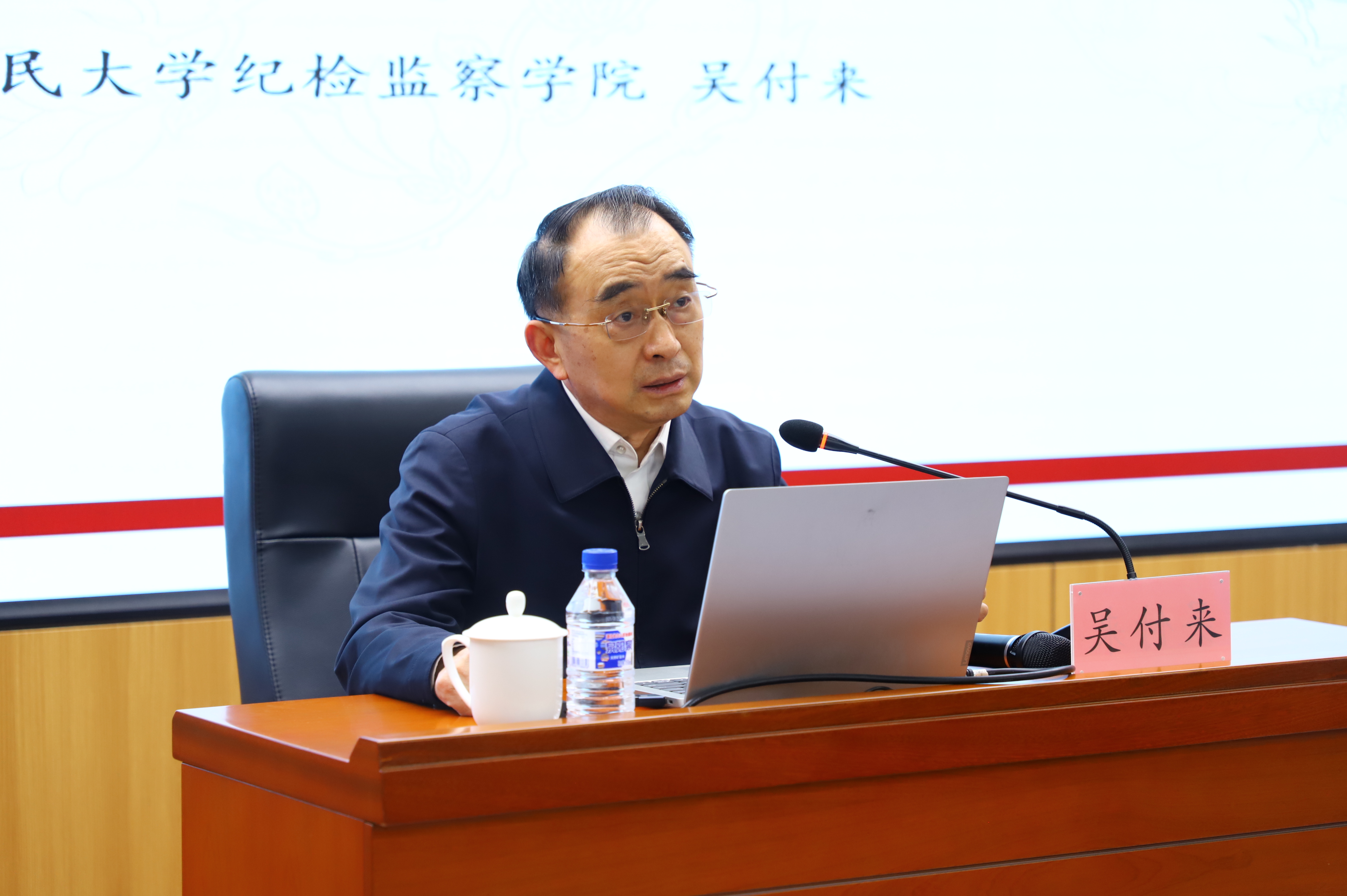 2025年1205日,吉林大学哲学社会科学学术讲座(总第1275场)暨清晏廉政名家讲坛(第13期)在东荣大厦B102报告厅成功举办。国务院学位委员会纪检监察学学科评议组成员、中国人民大学原党委副书记兼纪委书记、纪检监察学院学术委员会主任吴付来教授受邀作题为《深学细悟习近平总书记关于党的自我革命的重要思想》的学术讲座。吉林大学党委副书记、纪委书记,国家监委驻吉林大学监察专员胡漫,纪委副书记、党委巡视办主任刘晓昌,行政学院党委书记陈希贵出席活动,来自行政学院、廉政研究院、马克思主义学院,以及学校纪检监察机构110余名师生参加学习。讲座由吉林大学行政学院副院长、廉政研究院院长刘畅教授主持。