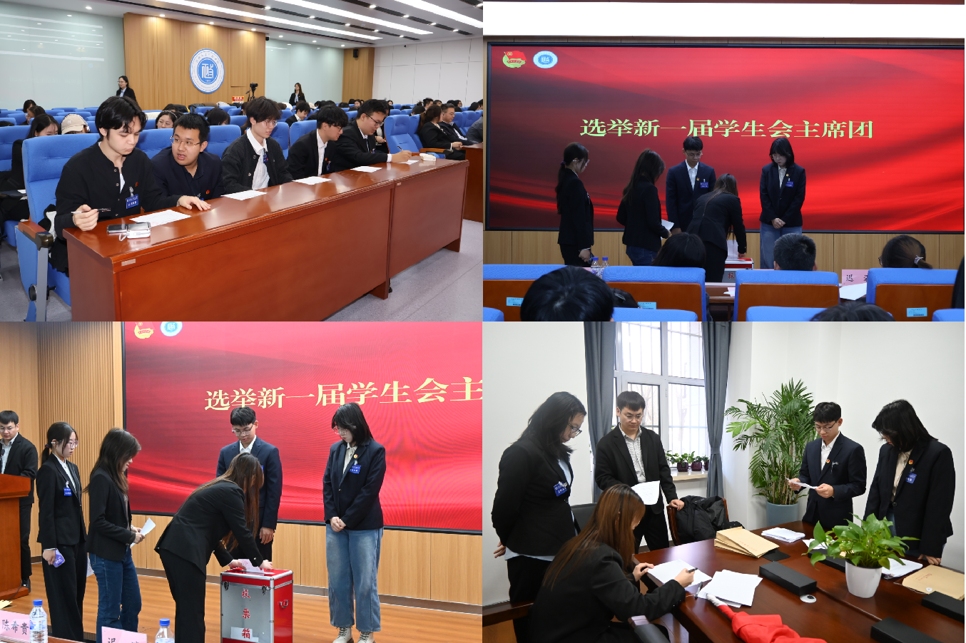 与会代表听取并审议了大会筹备情况报告,听取并审议了2022级本科生杨昊喆所作的行政学院学生会2025年度工作报告。大会采取差额形式选举2023级本科生王楠、张如冰、杨晴然为新一届学生会主席团成员。