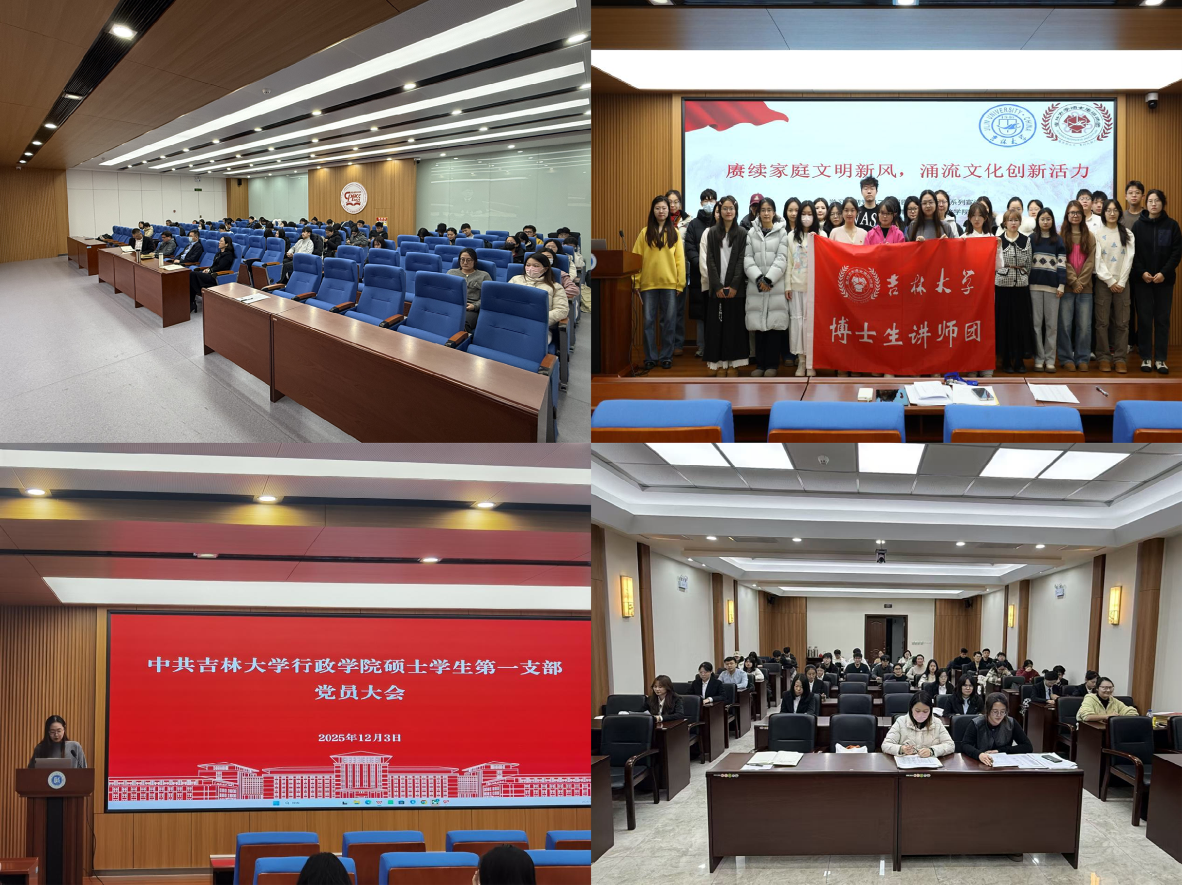基层党支部是理论学习的重要阵地。根据学校党委统一安排,学校于12月22日举行2025年下半年党员基本培训第二次集中大课,学院各支部分别组织全体党员观看中央党校(国家行政学院)教育长张忠军同志《深入学习贯彻习近平总书记关于党性重要论述,加强党性修养》专题报告视频,持续提升全体党员的政治判断力、政治领悟力、政治执行力。12月3日,学院硕士学生第一支部在东荣大厦B102召开支部党员大会暨主题党日活动,邀请吉林大学博士生讲师团成员王馨颍作《赓续家庭文明新风,涌流文化创新活力》主题宣讲,以党的二十届四中全会关于激发全民族文化创新创造活力的重要精神为指引,引导党员同志将家庭文明建设与文化自信践行相结合。本科学生支部于12月24日召开党员大会,会议会议严格落实第一议题制度,共同学习《中国共产党第二十届中央委员会第四次全体会议公报》节选,持续加强党支部政治建设,会议讨论了10名同志入党问题。