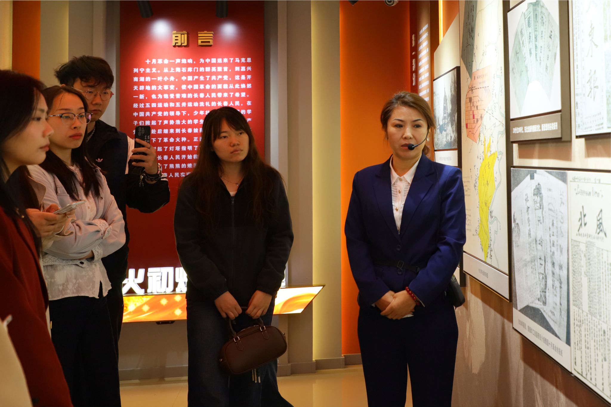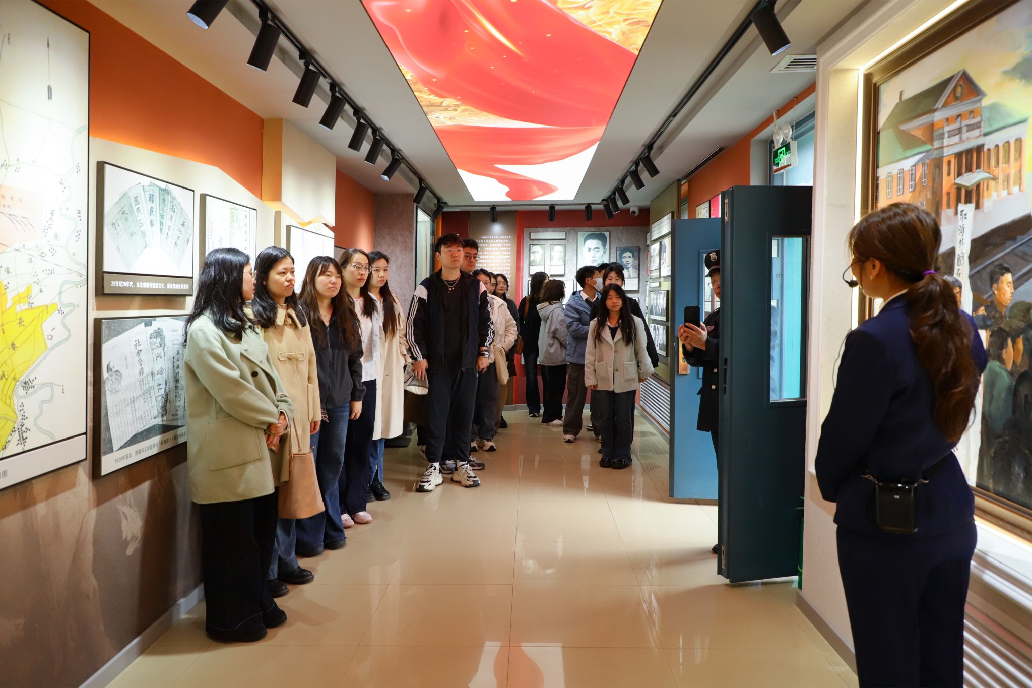 在历史与现实交汇的红色教育基地,同学们怀着敬畏之心开启了这场沉浸式研学之旅。在基地讲解员的引导下,同学们走进“星火初燃耀春城”主题展览,通过一幅幅历史图片、一件件珍贵文物以及翔实的文字资料,系统了解了中国共产党在长春早期革命活动的艰辛历程。