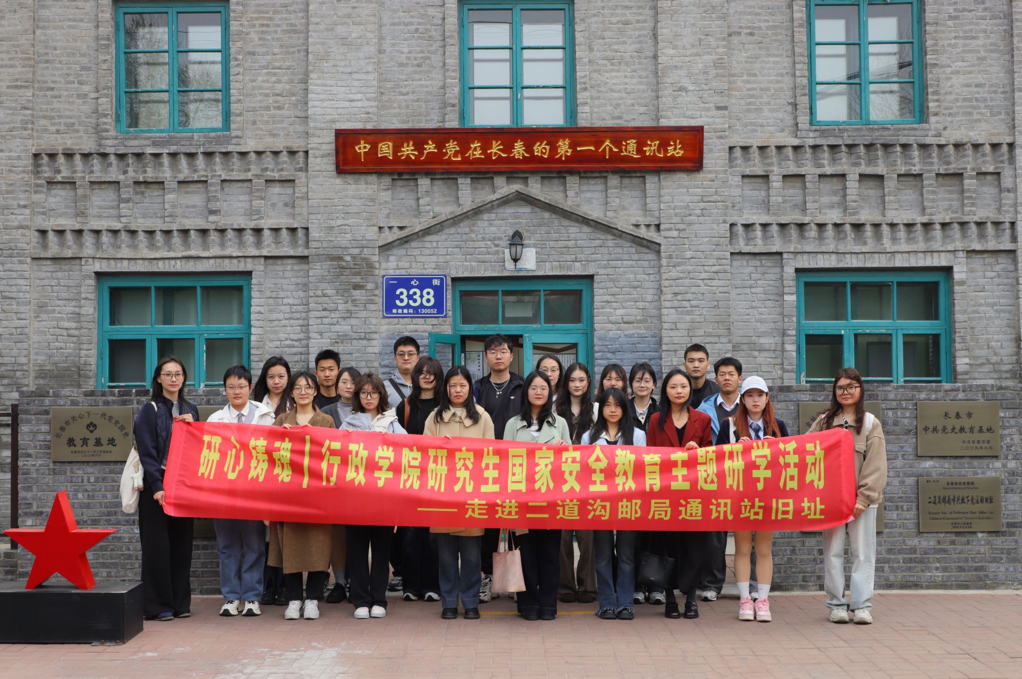 研心铸魂强信念,砥砺使命护安全。为深入学习贯彻总体国家安全观,推动国家安全教育走深走实,引导研究生在实践中坚定理想信念、强化使命担当,2026年4月16日上午,行政学院研究生团学组织开展了国家安全教育主题研学活动,带领学院研究生走进二道沟邮局通讯站旧址,在红色历史现场中感悟初心使命,在沉浸式学习中筑牢国家安全意识。